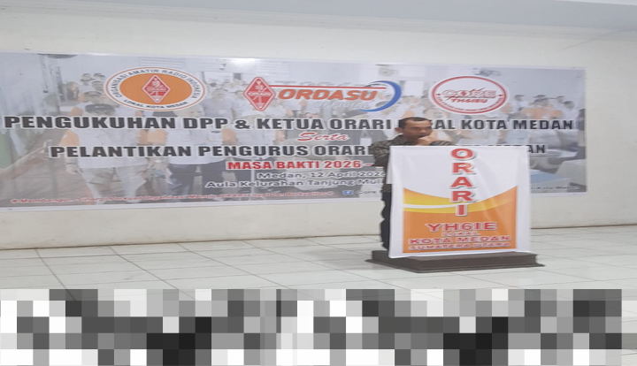 Harapan tersebut disampaikan oleh Kepala Dinas Komunikasi dan Informatika (Kominfo) Kota Medan, Arrahmaan Pane, melalui sambutan yang dibacakan oleh Kepala Bidang Persandian, Irfan Arfiandy. Acara tersebut berlangsung pada pelantikan Ketua DPP Orari Lokal Kota Medan dan pengurus baru untuk periode 2026–2029 yang dilaksanakan di Kantor Lurah Tanjung Mulia, Jalan Yos Sudarso, pada Minggu, 12 April 2026.